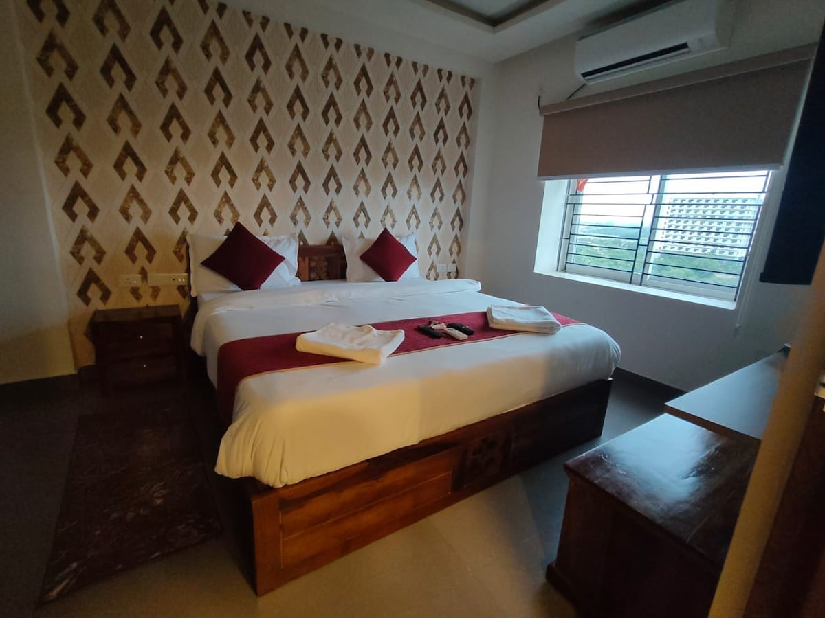 Enjoy a bright, airy, and spacious private room with an attached washroom, perfect for a comfortable and relaxing stay. This cozy retreat is bathed in natural daylight all day, creating a refreshing and peaceful ambiance. Key Features: ✔ Private room with attached washroom ✔ Air-conditioned comfort for a restful stay ✔ High-speed WiFi to stay connected ✔ Spacious & well-ventilated with ample natural light ✔ Ideal for small families seeking a home-like experience
