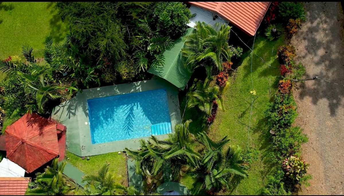 Hermosa casa en 5000 m², con 4 habitaciones (baño privado y aire acondicionado), cocina amplia, sala de estar y espectacular terraza. Disfruta de la piscina y acceso a un río cercano. Ideal para familias y amigos en busca de relajación y naturaleza. Beautiful house on 5,000 m², featuring 4 bedrooms (each with private bath and air conditioning), spacious kitchen, living room, and an amazing terrace. Enjoy the pool and access to a nearby river. Perfect for families and friends seeking nature.