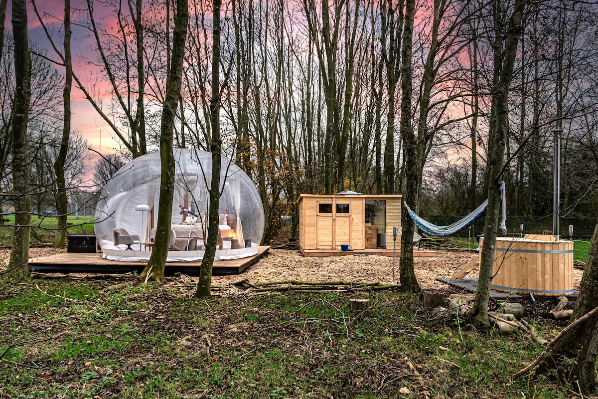森林中的气泡帐篷+热水浴缸。20分钟可达阿姆斯特丹