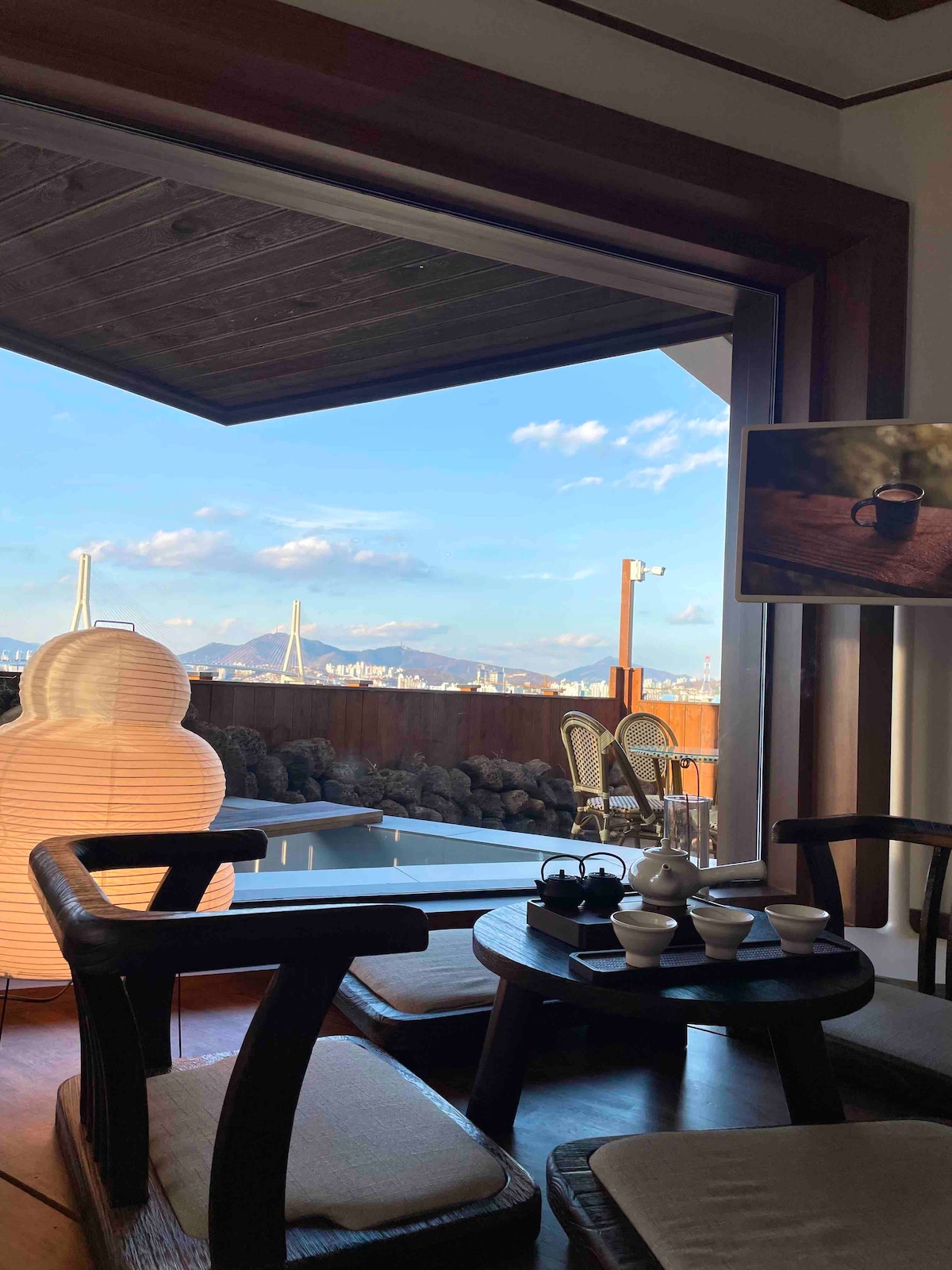 @stay8usanhang is a space overlooking Busan Port, thoughtfully designed to offer comfort and inspiration. Every detail, from music and fragrance to ambiance, interior, and bedding, has been carefully curated to enhance your stay. -Sky bridge connected to Busan Station (5-minute walk) -1 Super King bed, 3 Super Single beds Ocean-view bathtub (spa-ready) - Fully equipped / ideal for family travelers 50-inch large TV with Netflix, YouTube, OTT, and broadcast channels Bang & Olufsen speakers