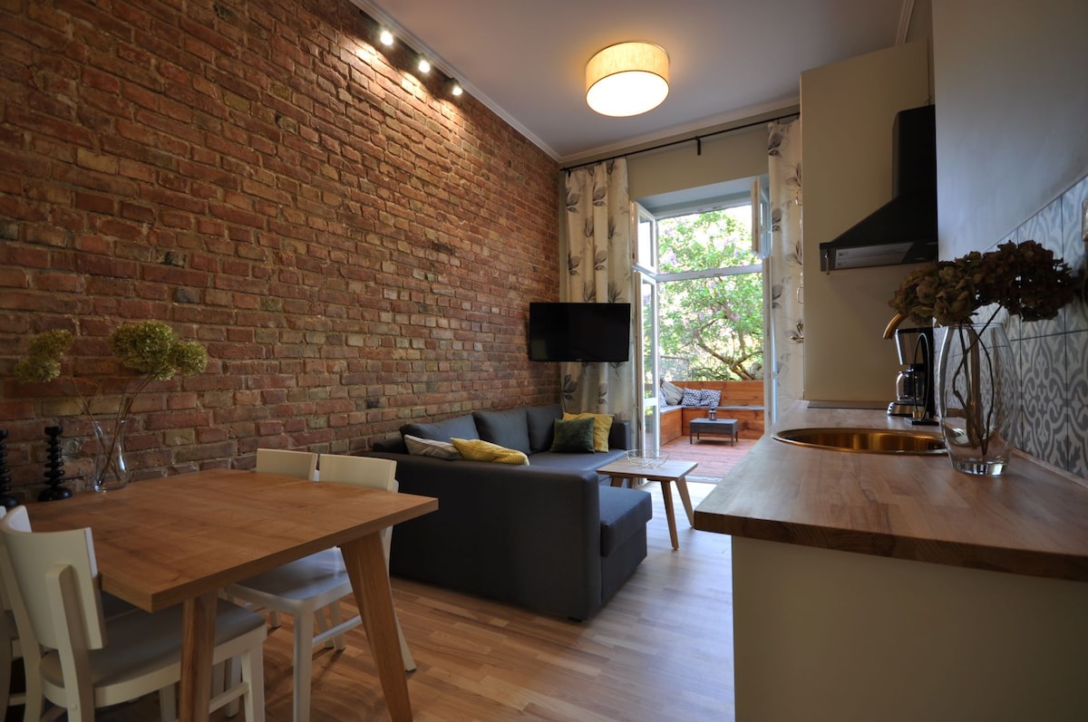 Nowe studio z balkonem i antresolą w zrewitalizowanej kamienicy w centrum miasta, tuż obok Uniwersytetu Artystycznego. Kilka minut do Starego Rynku. Dobry dojazd tramwajem z Dworca Głównego i lotniska. W budynku jest winda. Kamienica była miejscem zbrodni w powieści kryminalnej Ryszarda Ćwirleja pt. Masz to jak w banku.