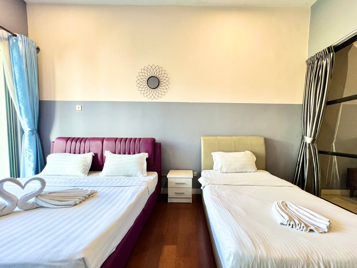 Bring the whole family to this great place with lots of room for fun. 适合大家庭的宽敞民宿。 位于亚庇市中心,步行即可到达各大商场、便利店、药房、海鲜餐厅、夜市、菲律宾海鲜市场、酒吧街等等。 — 距离亚庇国际机场仅10分钟车程 — 距离丹绒亚路日落海滩15分钟车程 — 距离水上清真寺12分钟车程 — 距离沙巴大学粉红清真寺40分钟车程 我们也提供豪华6人座包车一日游 :神山脚下一日游⛰️ :Kawa-Kawa红树林一日游🐒 :马里马里文化村🧟♀️🥻 :美人鱼岛半日游🏝️👙🧜🏻♀️ :九鲁河漂流🏞️ :日出/日落桨板体验🏄🏻♀️ 欢迎咨询。 Located exactly at the heart of the city. Convenient to get to anywhere such as Shopping Malls, Convenient Store, Pharmacy, Seafood Restaurant, Night Market, Seafood Market, Bar Street and so on.