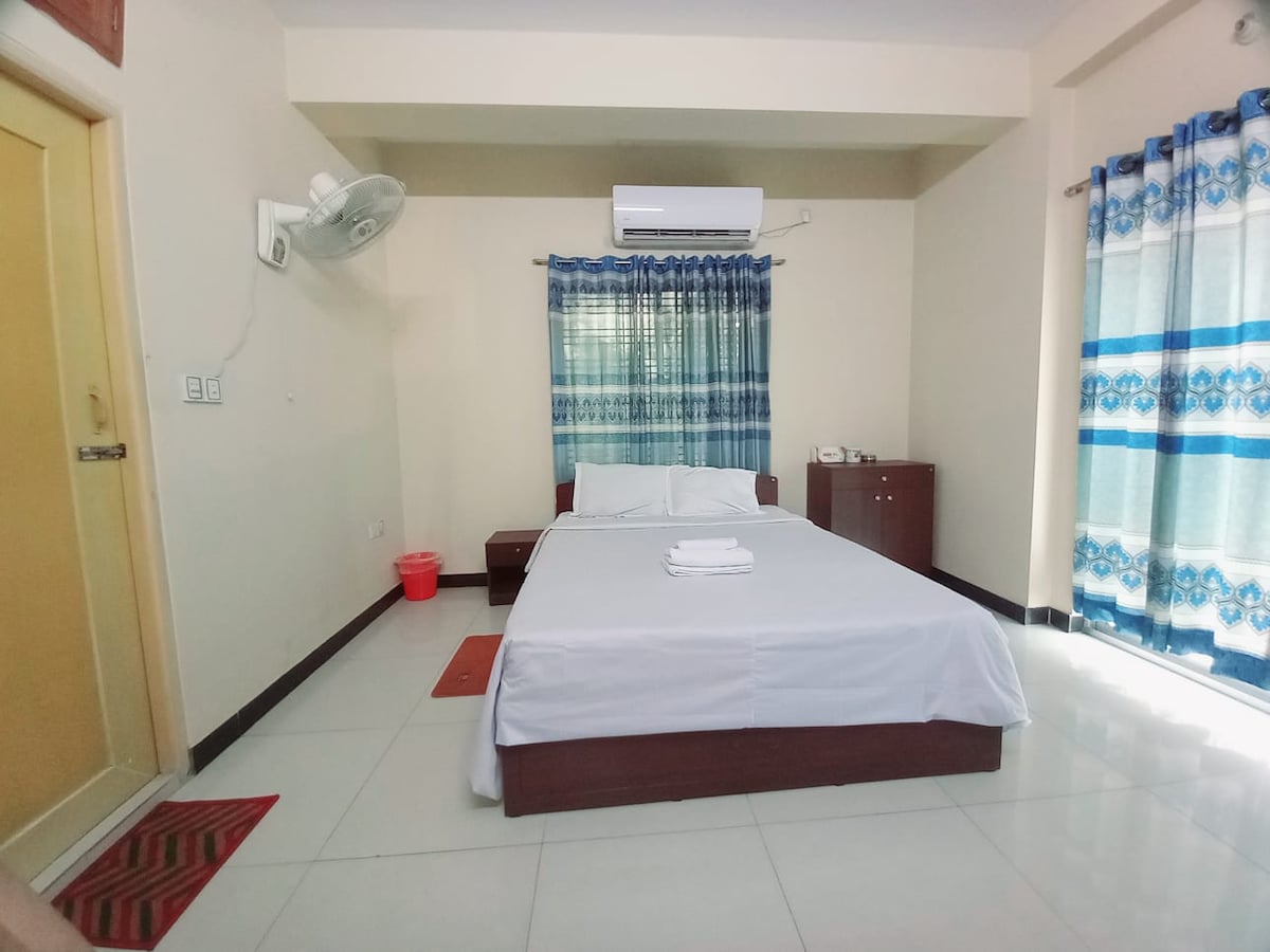 Stay at the heart of Rajshahi, next to the City Corporation Office! Walk to New Market, Rail Station, and Bus Terminal. Surrounded by top restaurants and shops, plus a major grocery store in the same building. Secured building with 3 bedrooms, 3 bathrooms, full kitchen, living and dining areas, Wi-Fi, 65” UHD TV, AC in 2 bedrooms, dining and living rooms. 1 parking spot, 2 elevators, all sides open for fresh air. Perfect for a comfy, safe stay!