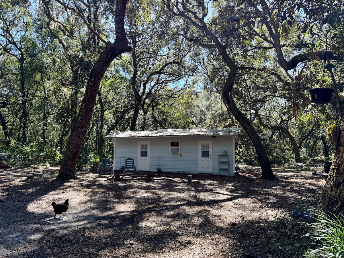 Vintage hunt | fish camp 3 miles from Salt Springs Recreation Area. Escape the city and relax by the peaceful, spring fed pond. Canoe from the cabin to Little Lake Kerr via private channel. Great fishing is around the bend, or off the dock. Conveniently situated in the middle of the Ocala national forest, Silver Glen and Juniper Springs are 15-20 mn away. This rustic cabin is surrounded by graceful live oaks and is often visited by wildlife like deer, bear & sandhill cranes.