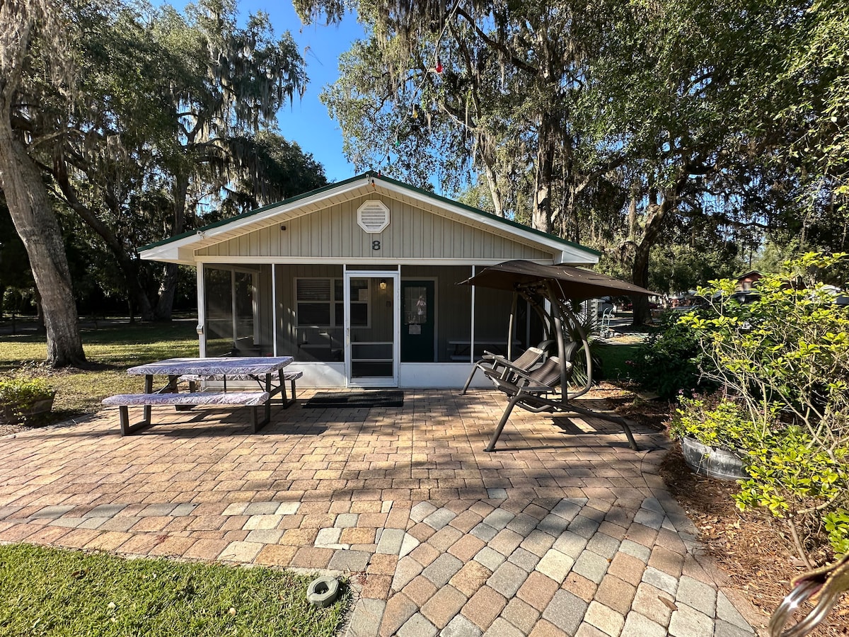 Cottage #1 is in Salt Springs Resort on the shores of Little Lake Kerr in the Ocala National Forest. You’ll be among oaks draped in Spanish moss with a view of the sparkling lake in the distance. Sandhill cranes will visit. Sunsets over the lake are legendary. The cottage has a full kitchen, TV, WiFi, and sleeps four to six. There are pools, hot tub, fishing pier, and boat ramp. In nearby Salt Springs swim at any time of year. Silver Springs with its glass-bottom boats is a half hour away.