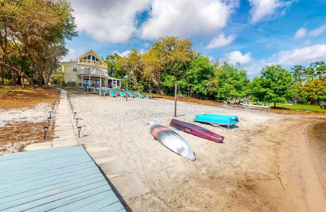 Nestled on the tranquil shores of beautiful Lake Kerr, our spacious property is an idyllic family retreat, boasting a lush waterfront lawn that stretches to a private dock. Sit and watch the boats go by, or just enjoy the abundant nature. Witness breathtaking sunsets that paint the sky almost nightly, best enjoyed with a cocktail in hand. With ample space for relaxation and activity, feel free to bring your boat and water toys.