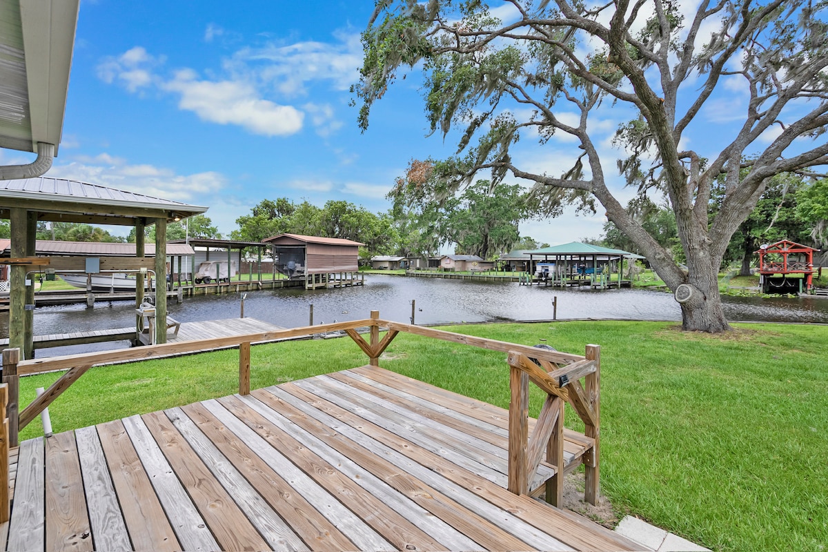 Immaculate Waterfront Point Lot, Detached Garage, Boathouse, 2 Bed / 2 Bath. Boasting 160+ feet of waterfront on a deep-water canal just off the St. John's River. Huge garage for cars, boats, motorcycles, or recreation! Extending off the living room is the fully screened Florida room offering beautiful backyard and canal views. Outside includes a boat house and lift (slip approx 24’x 9.5' and 6500lbs limit with slings) with freshwater fish cleaning station.