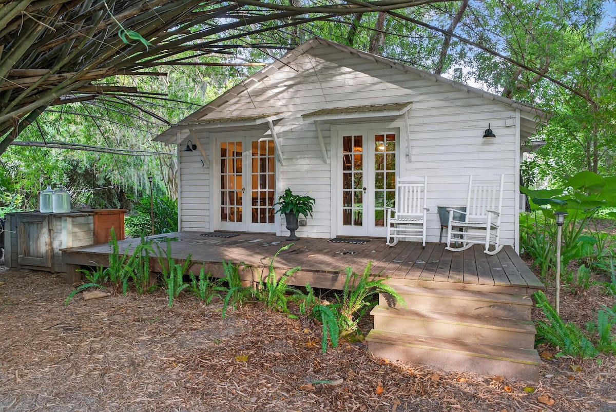 Enjoy stunning lake views while sipping your morning coffee on the back deck. Lots of paddling options exist here on spring-fed Sand Lake. Hosts offer a paddle boat, canoe, and paddle boards for your enjoyment. Practice yoga on your own private deck, fish from the dock, or star gaze around the campfire each night. Discover nearby Florida Springs and beaches all within 30 - 60 minutes. This 800 sq. ft cottage is centrally located between Gainesville & Saint Augustine. Netflix | Hulu | Wifi | BBQ