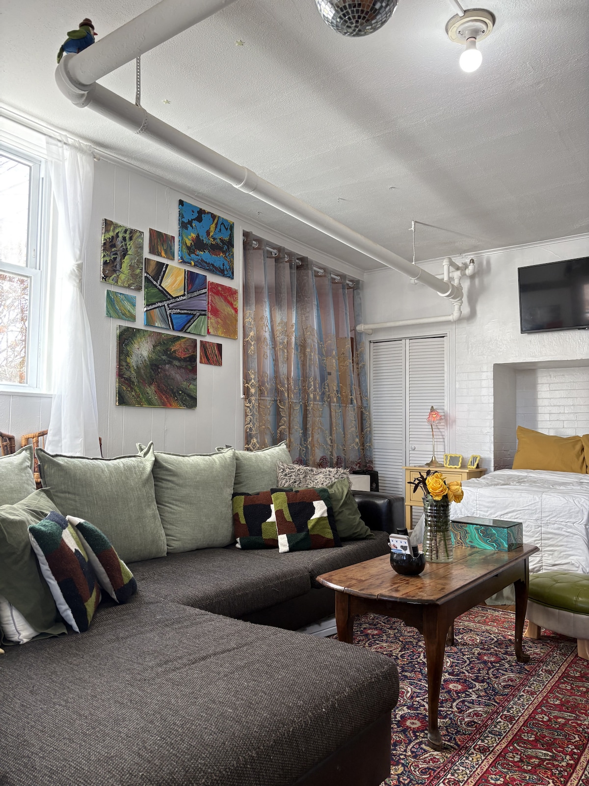 Luxe Studio # 2: Modern, clean & bright studio in the best location on Main Street Beacon! Everything at your doorstep: Restaurants, breweries,shopping, galleries, hiking. Walking distance to Metro North train & DIA Museum. Indulge in the unforgettable steam shower perfect after a day of hiking & sightseeing! Designed for your comfort and convenience. Coffee, tea & bottled water provided, full kitchen, luxurious bed & linens. Excellent location for exploring the Hudson Valley