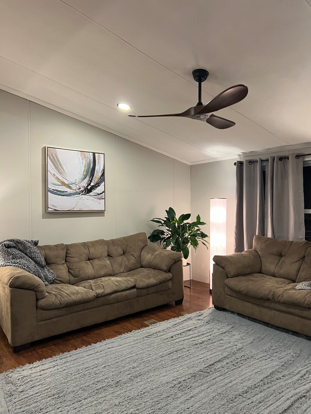 1 king bed, 1 queen fold-out couch, dedicated workspace. Take it easy at this tranquil and cozy getaway surrounded by a sheep meadow, just 2 miles from I-40. Fishing pond available upon request. We are located just 15 minutes from the charming small town of Cookeville, TN. We are also near beautiful natural attractions, such as waterfalls and lakes. Cookeville is centrally located between Nashville, Knoxville, and Chattanooga.
