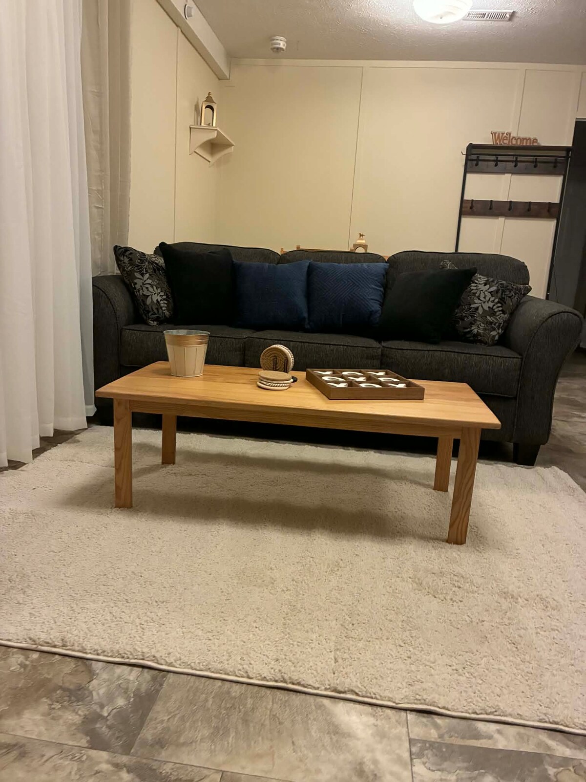 Welcome to our inviting riverfront retreat! Enjoy serene views from the private dock overlooking the river. With two bedrooms comfortably accommodating four guests, plus two cots available for additional sleeping arrangements, everyone can rest easy. Explore kayaking adventures on the water or nearby outdoor activities. After a day of adventure, unwind on the deck or gather around the fire pit for cozy evenings under the stars.