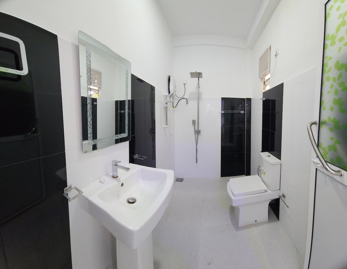 Temple Tree Residence Located in Marawila, an ideal holiday house for families and couples. It's a 35-minute drive from Bandaranaike International airport and the beach is only 2 km away. The spacious balcony is perfect for unwinding in the evening and enjoying the tropical surroundings. The amenities on offer, include Wifi, LCD TV, air-conditioned rooms, and a modern kitchen. Solar panels have been installed on the property and you won't be affected by the ongoing power cuts.