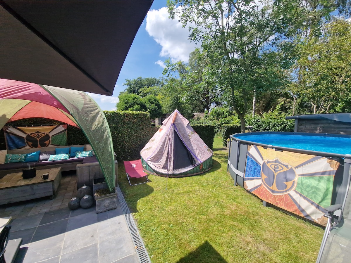 Dit is echt "glamping" !! TML-Tent voor 2 personen opgesteld aan het verwarmde zwembad. Sfeervol kamperen met alle comfort van een hotel Inclusief luxe ontbijt. Dit is alles behalve gewoon en maakt uw Tomorrowland ervaring uitzonderlijk en compleet. Op slechts 20 minuten wandelen van de hoofdingang van TML.
