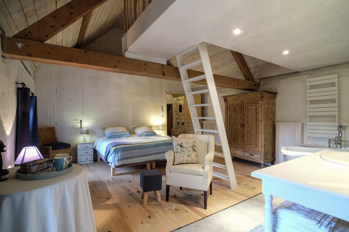 Our lovely nest in the heart of the Auvergne is for a couple or a family (max 5 pers + baby), or 2-4 ad. Private kitchen and bathroom. We renovated the rooms with second hand and organic materials, old furnitures and items coming from the former farm. There is a peaceful and vintage atmosphere here, and the nature surrounds you... If you're looking for somewhere to stay one night or THE place to rest a few days, you found the right place ! Check on the net "Le Vallon d'Armandine"