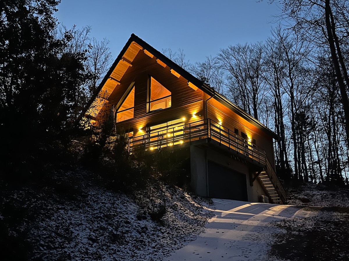 The house is a recently built and welcoming chalet. You will enjoy a region ideal for hiking or discovering a rich local heritage. Located in a peaceful hamlet, you will be welcomed by Sam and Krisha, our friends and English neighbors. At 10 minutes from the highway (A89), between Lyon and Clermont-Ferrand, the house can welcome 4 adults or a family with two children properly. The breathtaking view invited us to built this house, we want to share it with you...