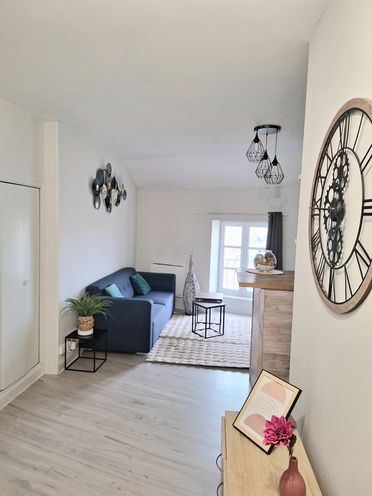Joli appartement plein centre avec vue Sancy et Livradois Forez Pièce de vie avec salon tv, coin cuisine, salle d'eau WC et chambre. Idéal pour vacances ou séjour professionnel A75: 3 min, gare SNCF 500m, borne de recharge50m, monoprix 20m boulangerie50m, zénith et grande halle d'Auvergne à 15 min Nombreux restaurants cinéma supermarchés Départ pour de nombreuses randonnées pêche et découverte de l'auvergne. Linge de toilette, de cuisine et lit fait à votre arrivée compris dans le tarif WIFI