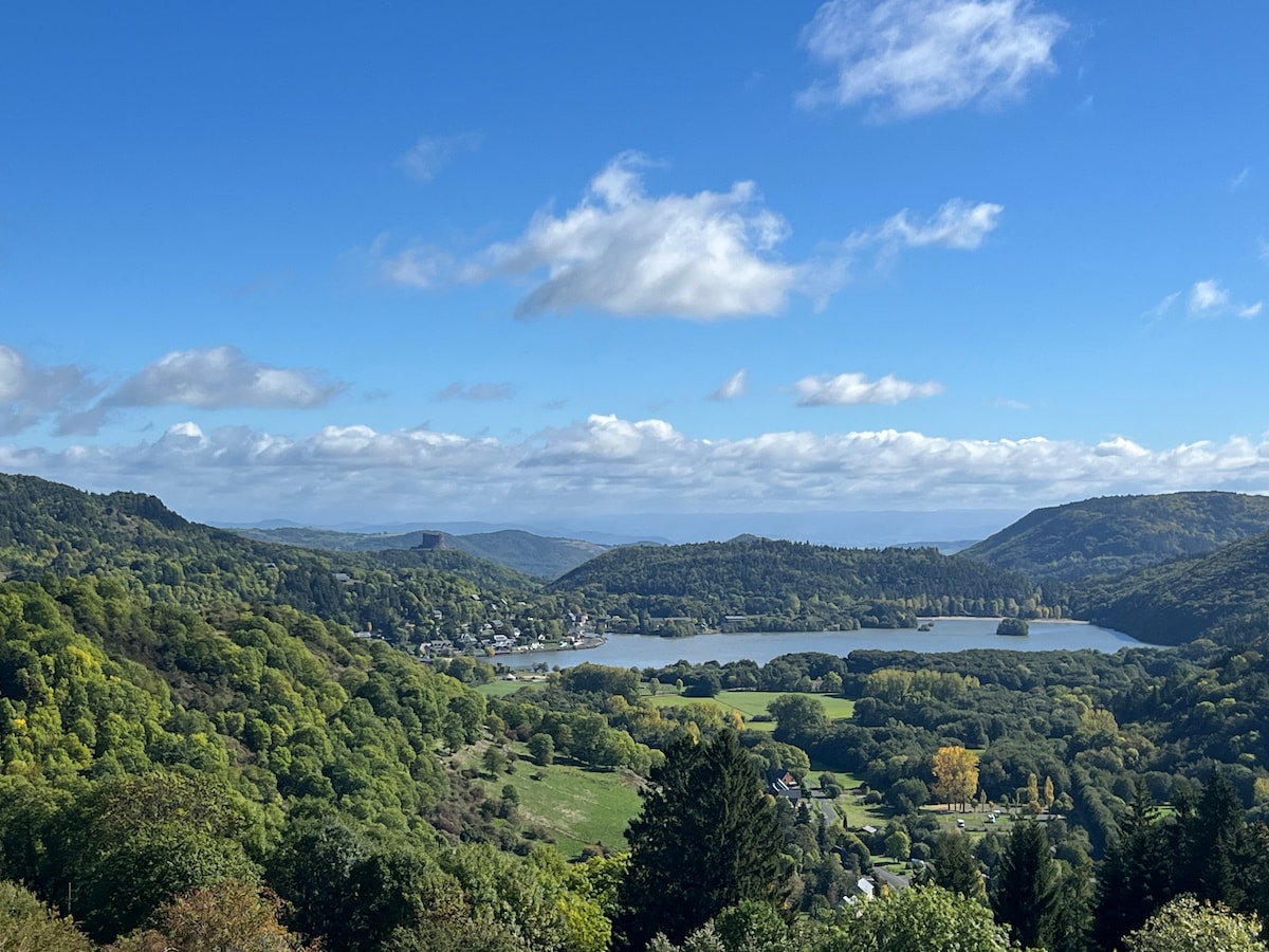 Chalet 63 📍À 1H de Clermont-Fd 📍À 18min de Super Besse Unique en Auvergne, vous pouvez aussi louer le chalet 15, voisin. Niché en bordure de lotissement de chalets d’un petit village auvergnat. Idéalement situé entre Monts du Cantal et le Sancy. Amoureux de la nature, laissez-vous surprendre par l’environnement et les prestations de ce chalet. Nombreuses randonnées, lacs, cascades, base nautique à 5min, stations de ski…