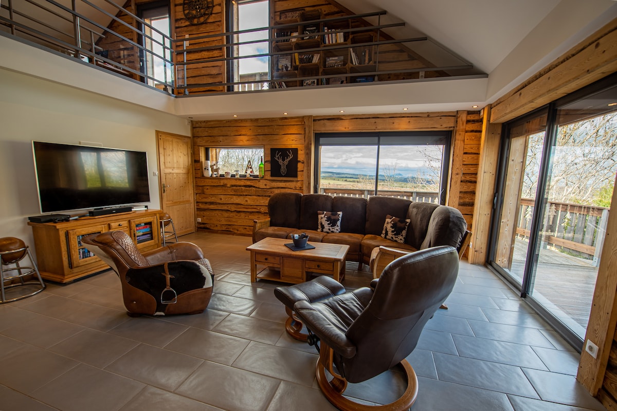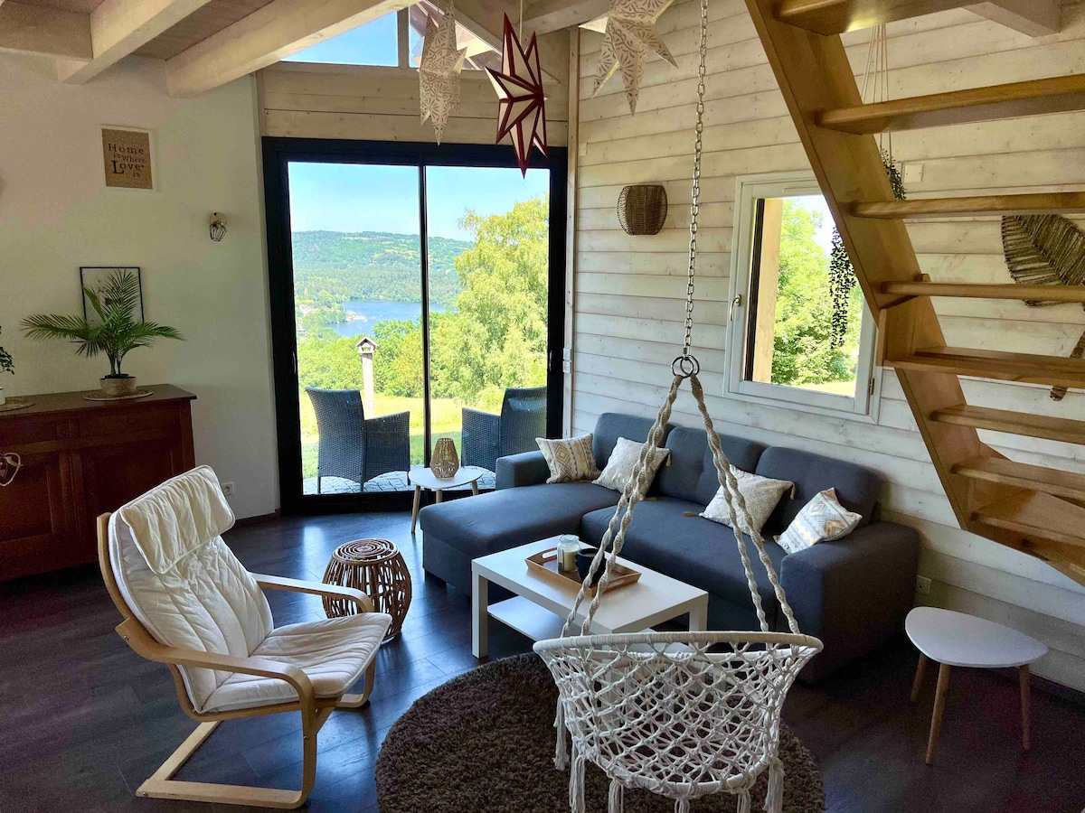 Wonderfull cocooning chalet, between lakes and mountains, with spectacular and panoramic views of the Lake of Aydat, Puy-de-Dôme and the entire valley. The large bay windows will offer you the permanent spectacle of nature changing with the seasons. The perfect place to come and recharge your batteries in the mountains by the lake for a picnic in spring, to swim in summer, to walk in autumn and close to ski resorts for the joys of snow in winter.