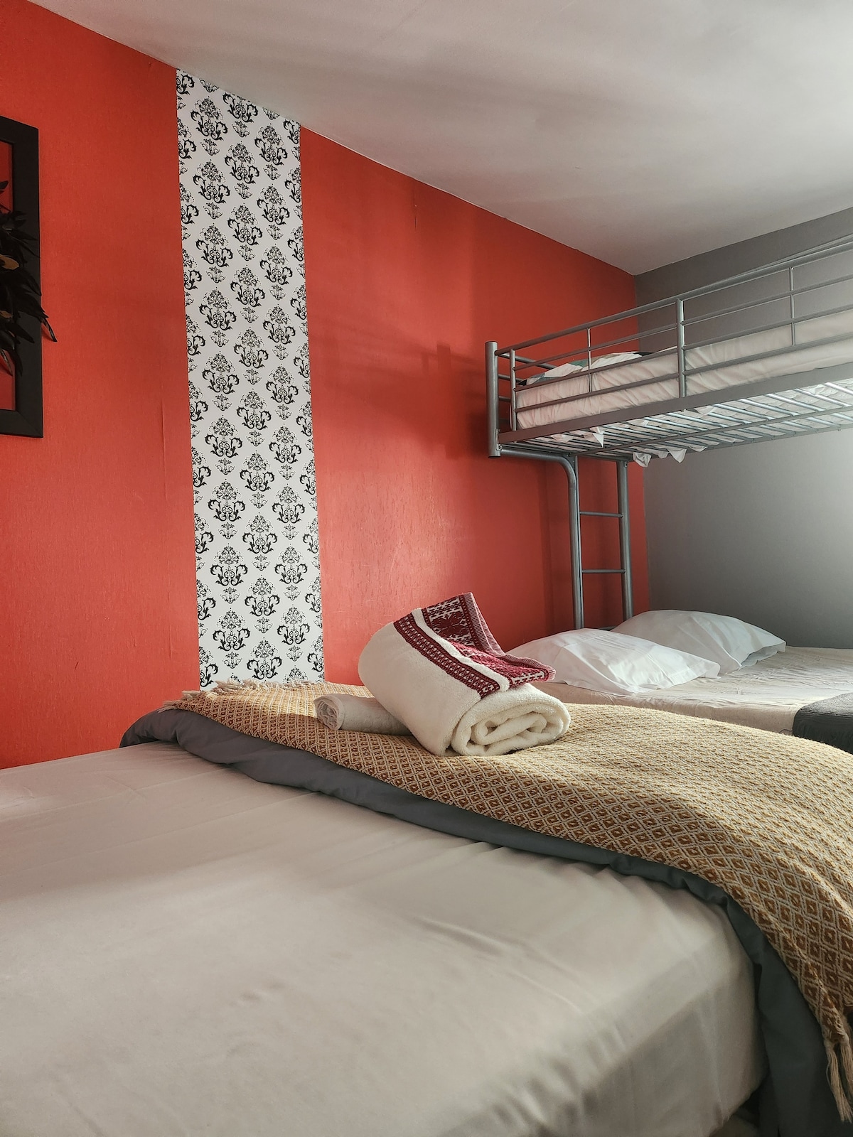 Chambre partagée . Quelques chambres individuelles sur demande. Venez vous ressourcer dans un endroit atypique, partager notre passion de la montagne et profiter d'une ambiance conviviale : bar, restaurant sur place avec produits de qualité et bières de garde.