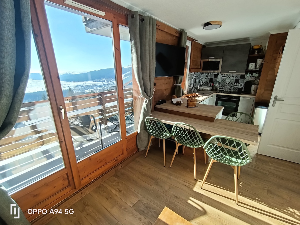 Appartement de 1 à 6 personnes, style chalet, situé au Village des Longes, avec accès direct au télésiège et aux randonnées. Au 4e étage avec ascenseur, vous aurez une vue imprenable sur la montagne! D’une superficie de 32m2, comprenant entrée avec placard, cuisine séparée et équipée, salon avec un clic clac, et lit mezzanine double, une alcôve avec 2 lits superposés, une salle de bain avec douche et wc. Un parking en bas de la résidence. Wifi fibre 480 Mo. Idéal pour des séjours en famille!