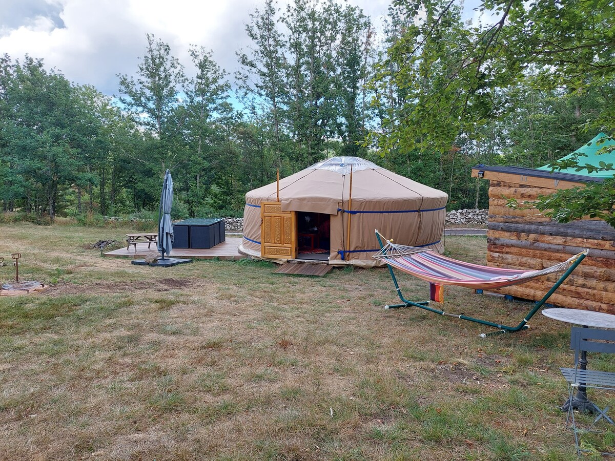 Venez profiter d'une jolie yourte, une bulle de déconnexion, située dans une clairière isolée, sans vis à vis..discrétion assurée ! Un cadre magnifique, un calme apaisant, une nature ressourçante... Commodités incluses : - 3 couchages adultes + 1 enfant/bébé - possibilité de mettre 2 matelas supl. de 1 pers. au sol - cuisine équipée (vaisselles comprises) - sanitaires à proximité (WC+lavabo+douche) - Équipement pour bébé - barbecue - terrain de boules - jeux pour enfant (balançoires+toboggan)