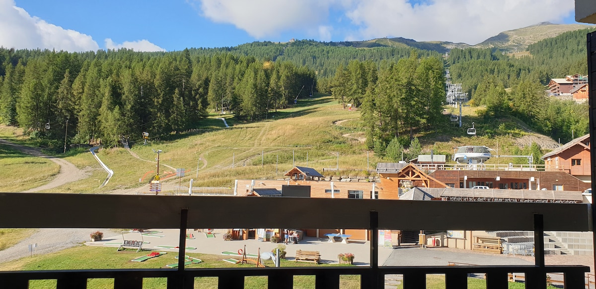 Studio rénové au pied des pistes, avec une vue magnifique (dernière étage, donc très calme). Parking gratuit au pied de la résidence. Avec casier à ski. Toutes commodités dans la station au pied de l'appartement dont, 2 supérettes, Boulangerie, restaurant, pharmacie, magasins, Piscine chauffée (payante), cinema, remontées mécaniques, Office de tourisme. Le studio est à 30 minutes en voiture de Briançon, 50 minutes de la frontière Italienne et à 2 h de la ville de Turin.