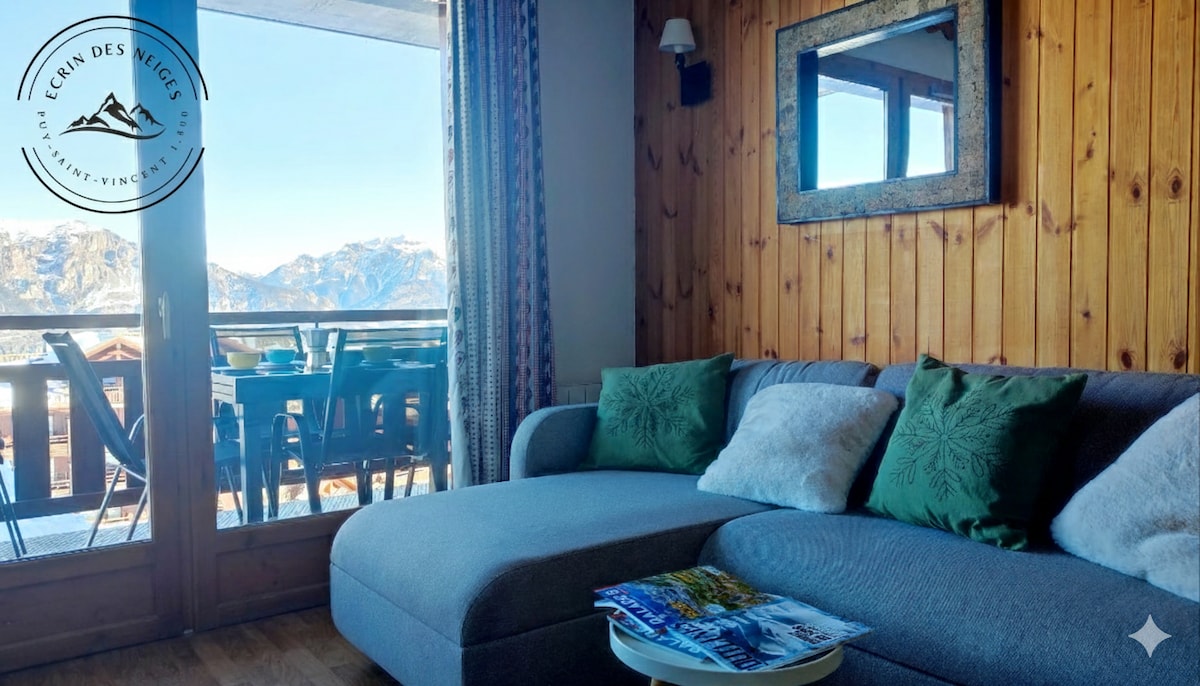 ***linge non fourni *** Logement charmant entièrement rénové, vous profiterez d'une belle vue sur les montagnes. Vous êtes à 150 m des pistes (retour ski aux pieds). Situé dans la résidence "Les Écrins" (Puy Saint Vincent 1700), à 300 m des écoles de ski, des commerces, complexe Panoramic, et du centre station 1600. Très bien équipé (lave vaisselle notamment). Accès autonome, draps/serviettes non fournis.