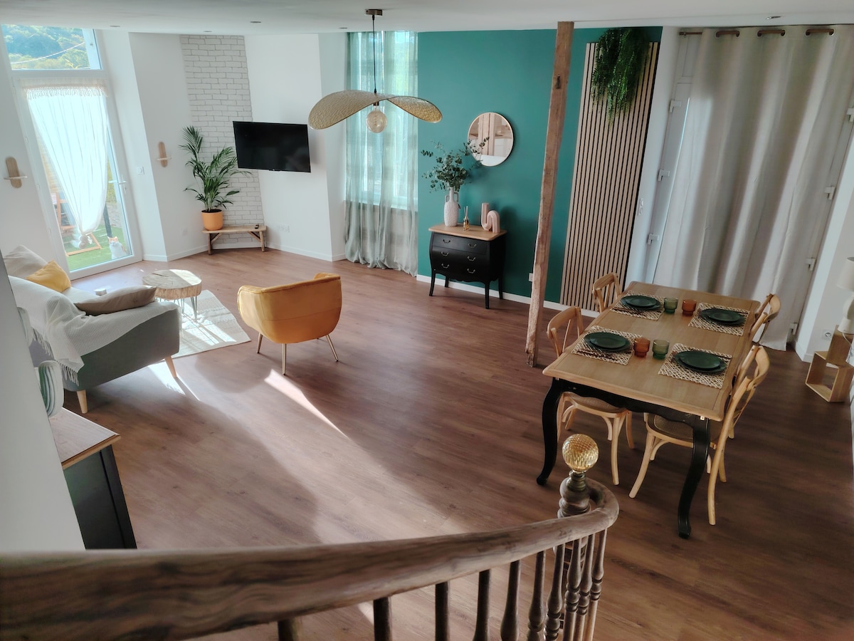 Proche des Pyrénées au cœur d’un village paisible, corps de ferme entièrement rénové associant charme de l’ancien et modernité. Maison attenante à une partie indépendante que nous habitons. grand séjour de 75 m² avec cuisine équipée et terrasse couverte avec plancha. Au rez-de-chaussée 3 chambres avec dressing et TV au plafond. Salle de bain avec douche italienne et baignoire balneo . Sèche-linge, lave linge et frigo. Terrasse extérieure avec jacuzzi!! Piscine avec 2 bassins!! FIBRE HAUT DEBIT