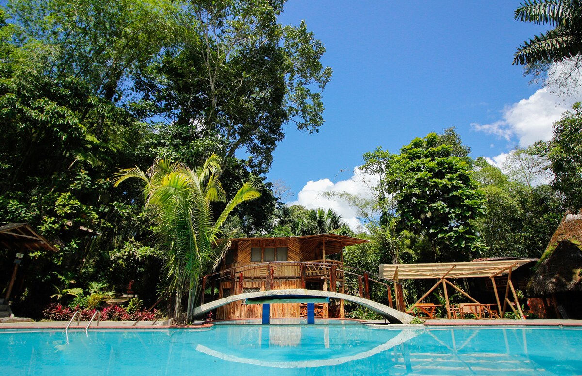 El lugar donde Doña Ceci y Huguito te atenderán como a uno más de su familia♥ Duerme con el sonido del río y el fresquito de la selva mientras te preparan con amor deliciosa comida casera. Durante el día puedes disfrutar de la piscina de agua natural y el chorro de vertiente que alivia cualquier tensión. Además de la mini granja que te conecta con la vida silvestre y senderos guiados que te adentran de forma segura en la selva. En Estancia Guadalupe lo tienes todo.