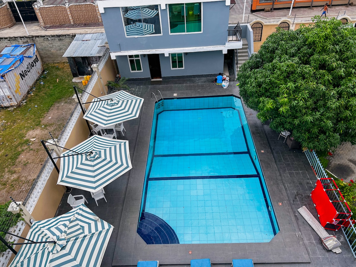 Aggiestays 位于 Goba 的舒适 2 卧室房源,带泳池和花园,MM