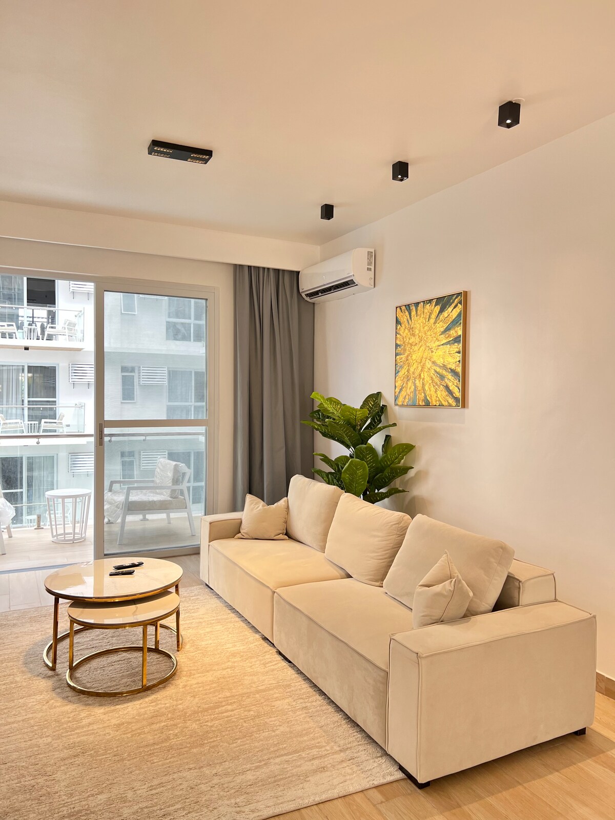 现代房源,配备75英寸电视,距离海滩和市区5分钟车程