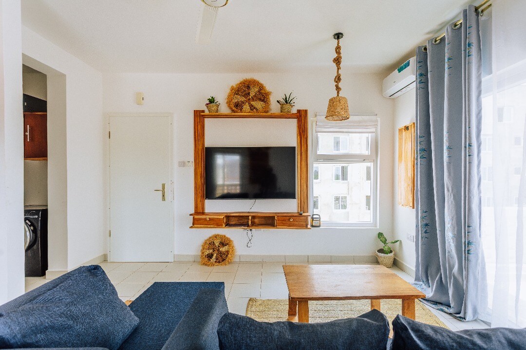 Fumba Town provides the amenities for any expat to live remotely or on a full time basis in comfort and style for a very long time, providing options for entertainment, dining, shopping, nature, beach, swimming pools, community (over 20 countries represented), etc. Located 15 minutes from stone town and 25 minutes from the airport! Welcome to The Sunrise 1 Bedroom apartment in Zanzibar! This boho inspired NY bachelor Apt has all you need to get away including French Press, 60” Smart TV, etc.