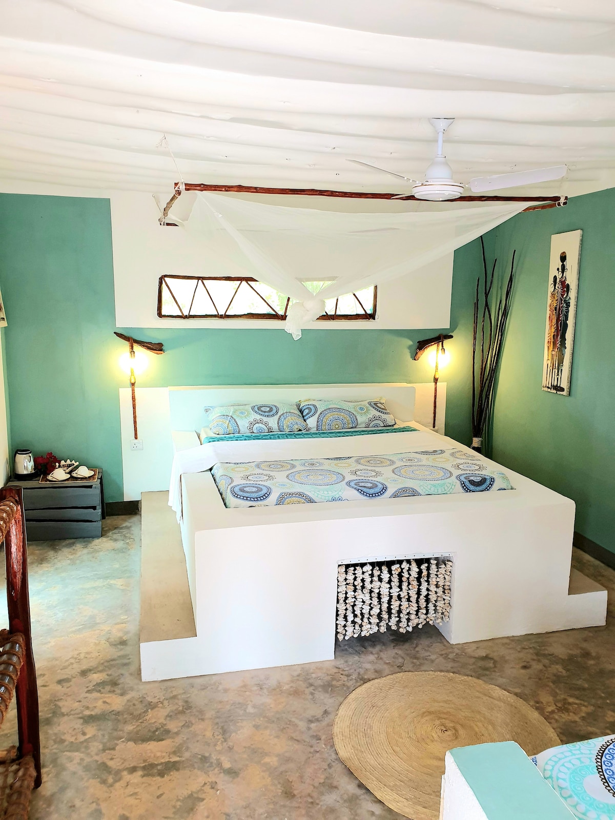 The place is surrounded with beautiful environment and quietness. The beach life at Kondo is a special experience. Also it is a good place to hold any party, to have fun with relatives, friends too, close to healthy happiness, while enjoying the horizon of the sea. A walk along the beach make you see how they construct and repair their boats, med their nets and work on the sea, you can get it traditional dancing music from the people in the village while enjoying life in kondo beach house