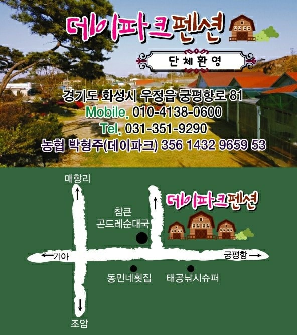 안녕하세요? 정원이 아름다운 곳에서 힐링하세요!!~~4월(철쭉과 영산홍)5월은(장미정원) 6~8월은 수국정원으로9~10월(국화) 쉼에 공간~~!! 다육 사랑으로 겨울에도 바위솔정원~~!! 석양이 멋있는 궁평항에서 신선한 회와 아이들이 좋아하는 갯벌체험,궁평항유원지 바닷길이 열리는 제부도와 요트를 즐길 수 있는 전곡항이 있습니다. 탁 트인 전망과 조용한 시골 할머니 댁에 놀러 온 정겨움을 느낄 수 있습니다.아이들이 맘껏 뛰어놀 수 있도록 대형 트램폴린과 에어바운스가 있는 놀이방, 마당에 모래놀이도 준비되어 있으며, 어른들을 위한 배드민턴, 농구도 가능합니다~ 많은 분들이 가족모임 장소로도 만족하십니다. 비오는 날에도 바베큐 가능합니다. 숙소는 단독으로 1층전체를 게스트 룸으로 추가 인원 명당 2만원(당일투숙인원포함) 어르신,노약자,아이들 출입 가능합니다. 주인 집과는 출입구가 따로 있어서 사생활 침해가 전혀 없습니다.