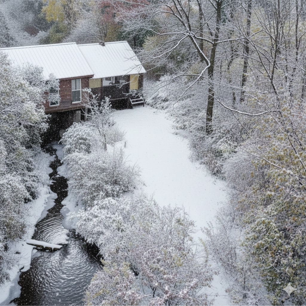 This is tiny cabin in the woods! Have you ever used a hot tub in the snow? You should try it! Sometimes we just want to be alone. Sweet Solitude is a private place to focus on what's really most important, especially for couples. Our cabin locally sourced. The timbers were sawed at a local hemlock mill. The exterior is made of boards we had milled from old pines along US Hwy 322. Even the stones we laid for the fireplace once splashed in a local creek.