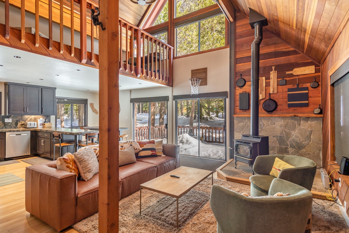 🏡 A Kid's Dream! Family-friendly, modern 3 br. home in Tahoe Donner. Kids room is spacious with a secret hideout 🤫, arcade cabinet, fort kit, games, keyboard & Nintendo. Sleds, airhockey, pool table! Very close to world-class ski mountains, Donner Lake, TD ski hill 🎿 + other HOA amenities (shared hot tub, gym, golf and pool). Modern kitchen, gas fireplace🔥, king bed in master. Quiet hood with beautiful views from the deck and balconies. Top-rated home - we'd love to host you!