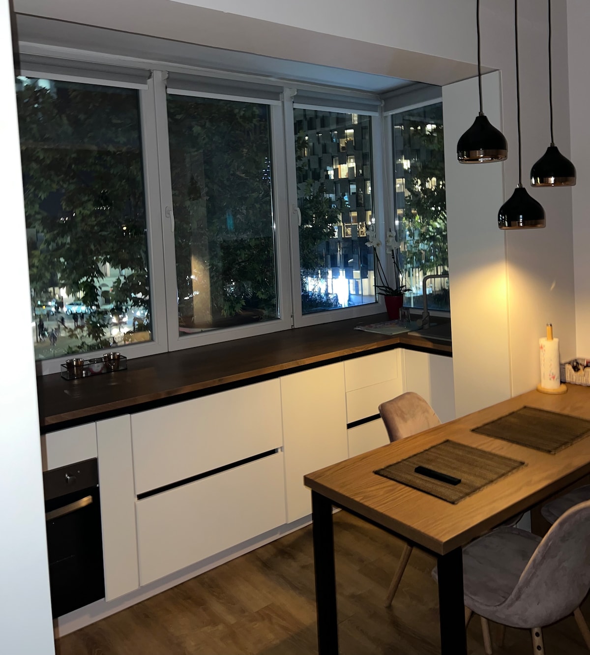 This is a 80 m2 modern apartment located in the most famous and beautiful neighbourhood of Tirana called Blloku within easy walking distance from everywhere such as Skanderbeg Square, Old Bazaar, Tirana Park, Main Boulevard, House of Leaves, Bunk’Art 2, Pyramid of Tirana, National Museum etc .Most exciting neighbourhood with the city’s best bars, restaurants and especially happening spots for drinking, dancing and live music. 24/7 Supermarket, Cinema, Bus stop all 50 m away.
