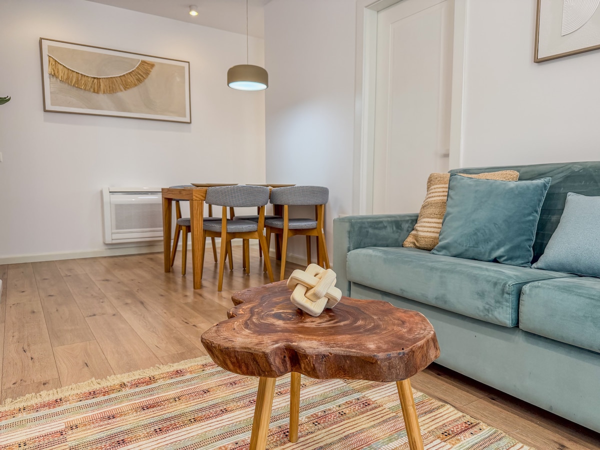 Stylish top-floor apartment in vibrant Blloku, perfect for up to three guests. Enjoy the tasteful decor and modern amenities: air conditioning, smart TV, fully equipped kitchen, dishwasher, washing machine, and a charming balcony. Indulge in the comfort of a spacious bathroom with a separate shower and freestanding bathtub. Steps from bars, restaurants, and Tirana Lake, with easy access to bus station, paid parking, gym, and supermarket. Your ideal home base for discovering Tirana!