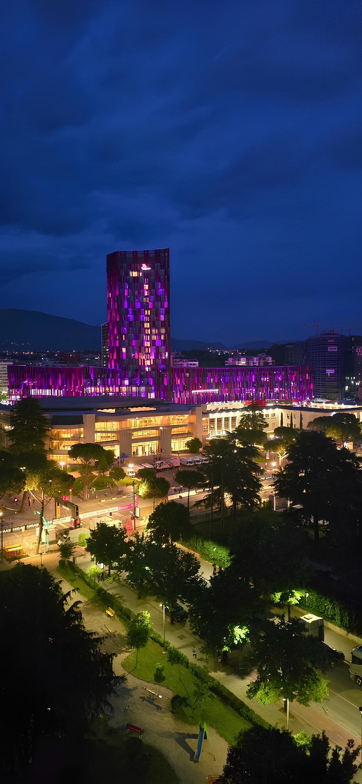 Imagine staying in a glass pyramid on the 10th floor overlooking Tirana. The whole floor is yours! Spend time in a cozy glass pyramid penthouse with full privacy and beautiful open-space views to enjoy. The apartment features a large balcony with a swing, an outdoor seating area, and stunning scenery. The glass pyramid is in the middle of Tirana, next to the trendy shopping street of Myslym Shyri and 5 minutes away from the youthful, famous ish-blloku district. Come in for a unique experience!