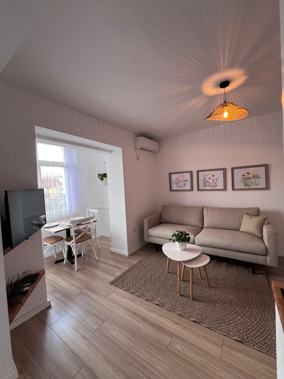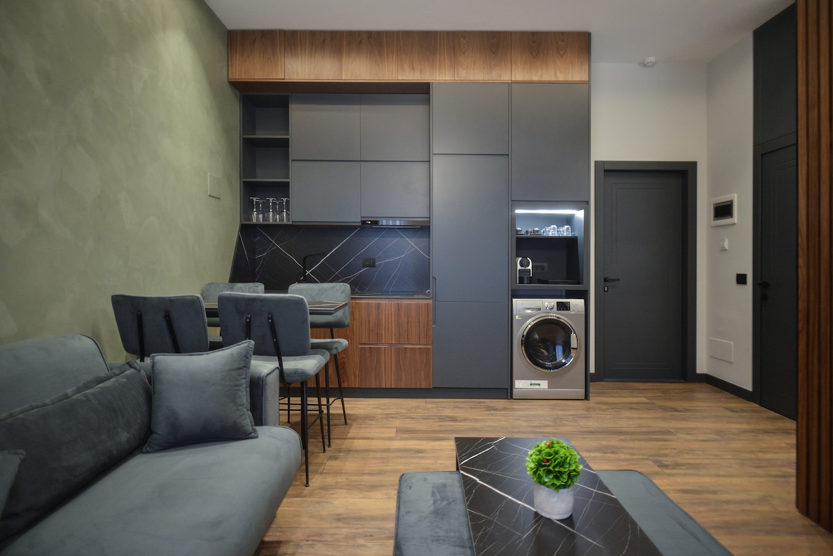 Our chic studio is a stylish retreat for everyone. Just a 2-minute walk to the city center, Bllok, and the main boulevard, the location is ideal. The modern interior offers a sense of simplicity and comfort with a well-equipped kitchen, cozy bed, modern bathroom, washer, and dryer. Whether you're exploring Tirana or enjoying a quiet night in, this studio is the perfect choice! One of two adjacent flats on the same floor – check 'Boutique Flat' for availability. Visit: airbnb.com/h/boutiquetr