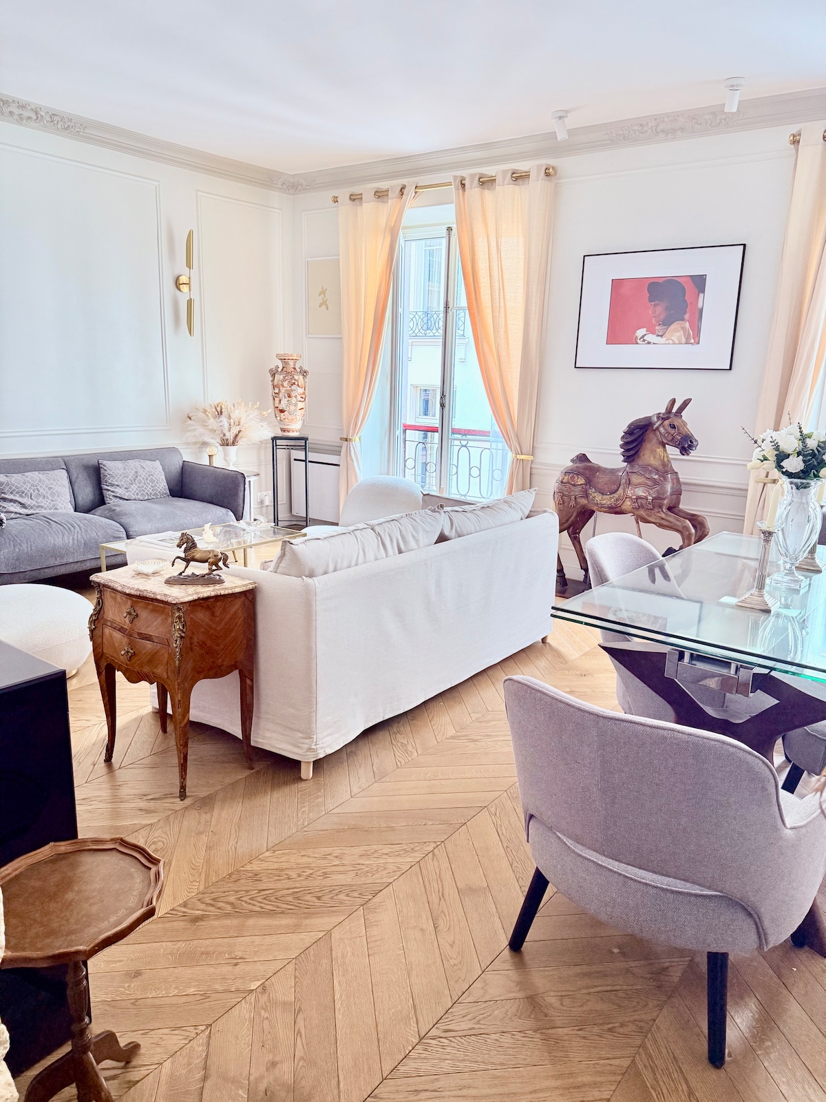 Discover this magnificent 90m² air-conditioned apartment, designed like a hotel suite and boasting a beautiful 25m² private terrace in the heart of Paris's 8th arrondissement. Completely renovated by an architect, it is located on the 5th floor (with elevator) of a traditional building with excellent security. It's the ideal place for a memorable stay in the capital.