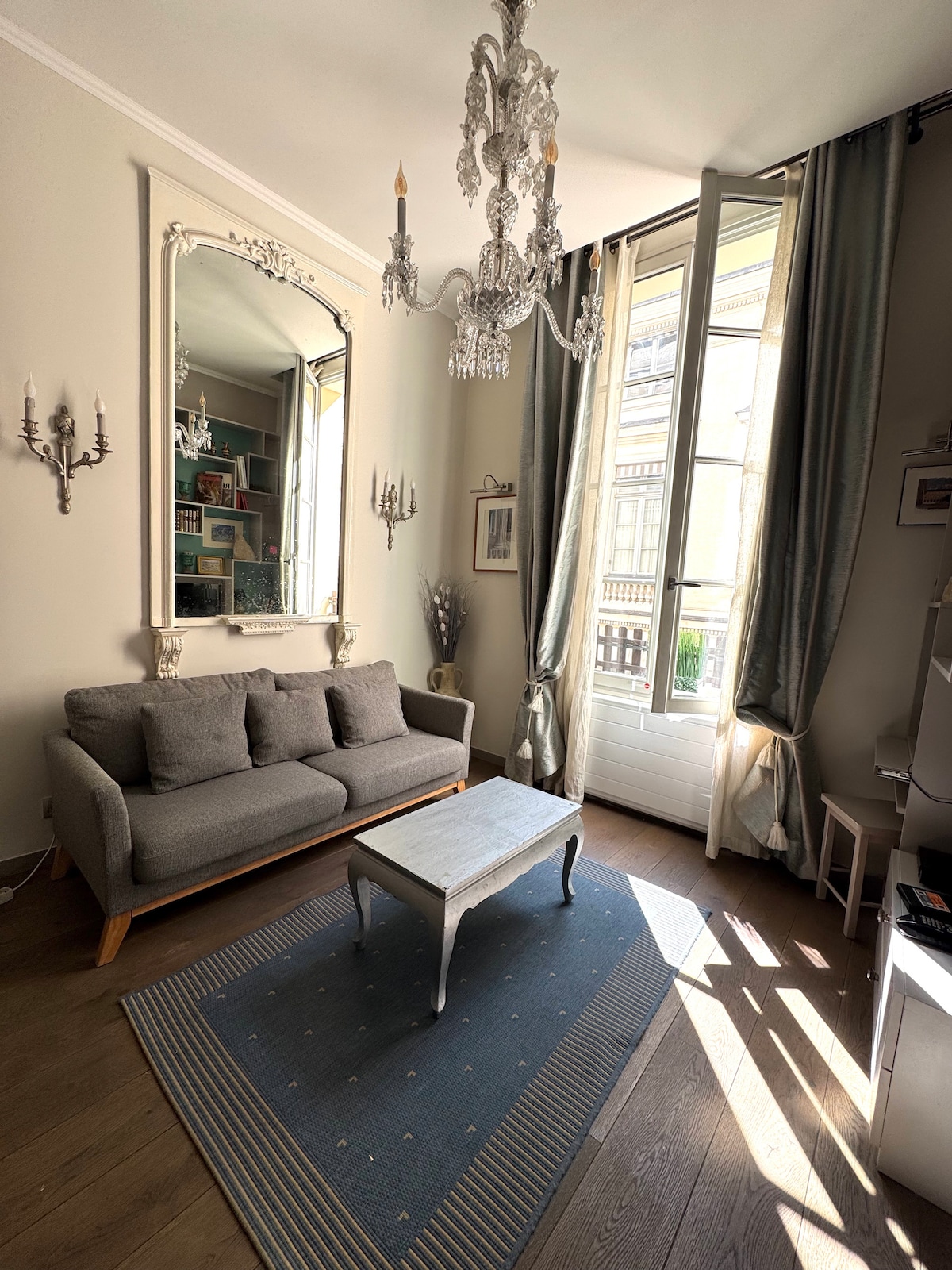Spacieux and elegant studio on the 2nd floor of a late-18th century building. It is ideally located, in the heart of the historical center. It is ideally located, 200 yards from the Tuileries Gardens and the Louvre, a short walk from the Seine, the Musée d'Orsay the Palais Royal Gardens. Saint Germain des Prés is just across the river, and the gorgeous old Opera House, still home to the Ballet de l'Opéra, is a few minutes' walk away.