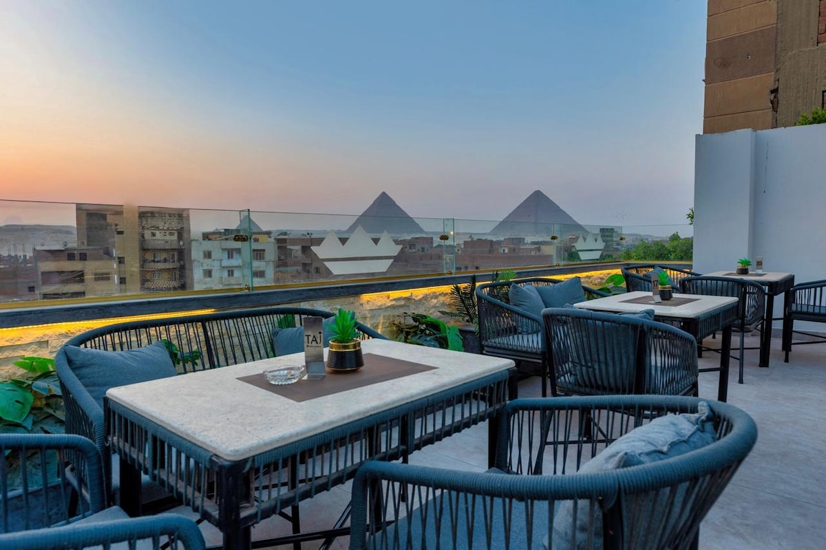 Just 3 km from the Great Pyramids and the Grand Egyptian Museum, our boutique retreat blends timeless views with personalized service. Enjoy breathtaking sunsets from the rooftop terrace overlooking the pyramids, and relax in stylish, tranquil surroundings. With warm, attentive hospitality at every turn, our hotel offers a serene escape where comfort, culture, and care come together to create a truly unforgettable stay.