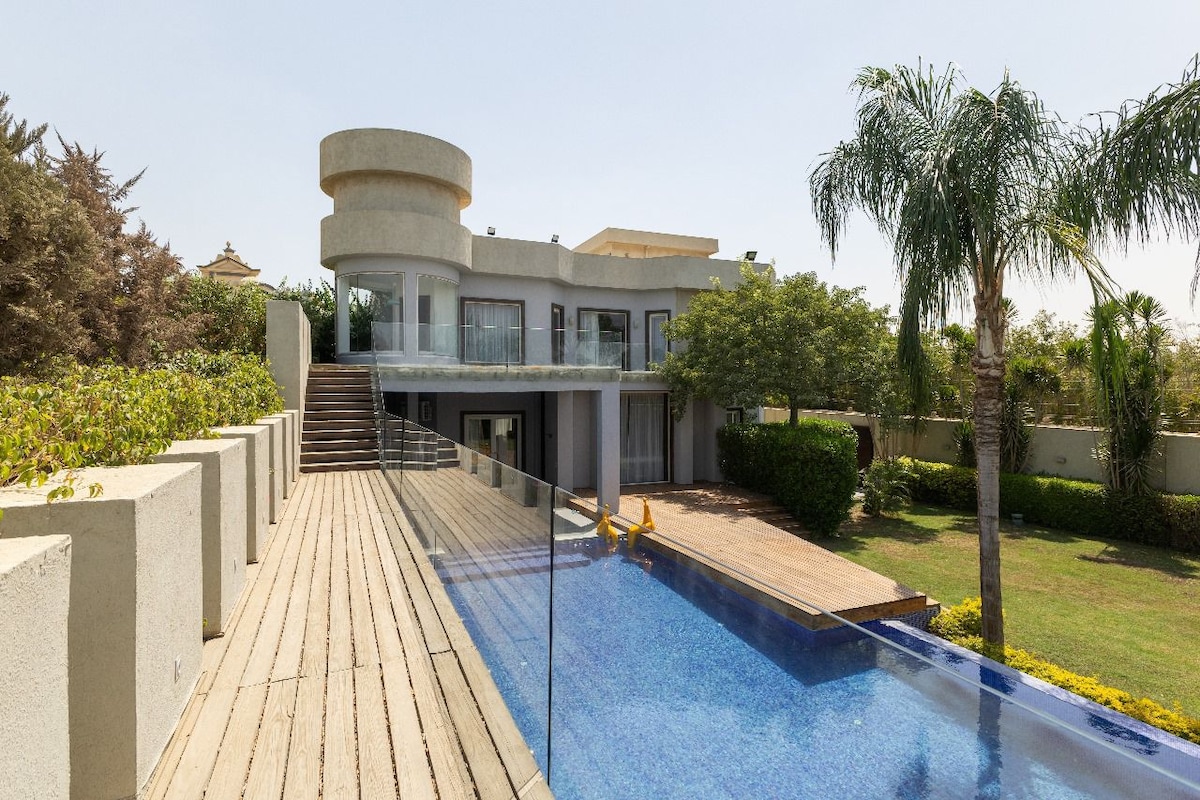 يوفر مكان إقامة الفيلا جهاز تكييف وشرفة. توفر هذه الفيلا مسبحاً خاصاً وحديقة ومرافق للشواء وواي فاي مجاني ومواقف خاصة للسيارات مجاناً. تتوفر (6) غرفة نوم في الفيلا، وغرفة معيشة، وتلفزيون بشاشة مسطحة مع قنوات فضائية، ومطبخ مجهز، و (7) حمّام مع بيديت ودش، بالإضافة إلى تراس وإطلالات على المدينة. تتوفر مناشف وبياضات أسرّة في الفيلا. يمكن للضيوف الاستمتاع بالمسبح الداخلي . يبعد مكان إقامة الفيلا 23 كم عن أهرامات الجيزة. يقع مطار سفنكس الدولي على بُعد 25 كم من مكان الإقامة.