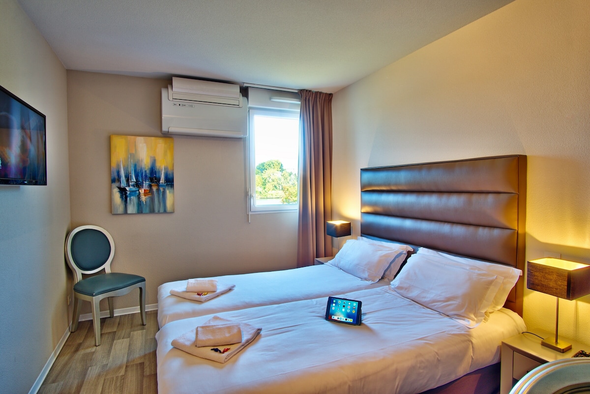 - Official website of hotel Roissy - Best rate guaranteed. - No booking fee - The nearest hotel from Lourdes Grotto entrance. - New high quality bedding - Free Wifi in all around the hotel - Car park Modern new decoration and bigger sized 22m2 High quality bedding in 2 meters long 2 individual beds Air conditioning Free wifi access Bathroom with WC and bidet Coffee & tea facilities Bottle of water Minibar Safe-box Hairdryer Extra pillows Soundproof window and door Direct telephone line Satellite TV 40 international channels Electronic lock Desk Luggage rack Wardrobe Balcony on request Connecting rooms on request