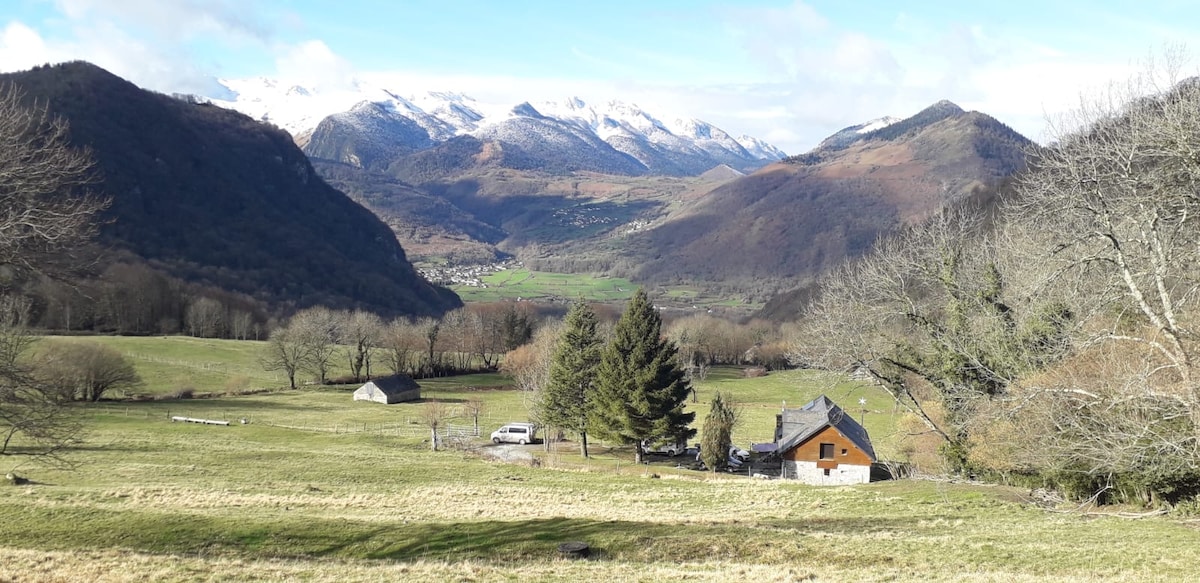 Situé à 1000 m d'altitude dans le Val d'Azun, proche du lac d'Estaing et environ 12 mn des Thermes d’Argelès Gazost. Idéal pour rando (GR10 traversant d’ouest en est), ski en famille ou entre amis, ou tout simplement un besoin de se ressourcer en pleine nature. Sur place vous trouverez un chalet en pierre de 35 m2 sur une propriété de 3000 m2 arborée longée par le Gave d'Estaing. EN PERIODE DE VACANCES SCOLAIRES : la location est à la semaine. 😊