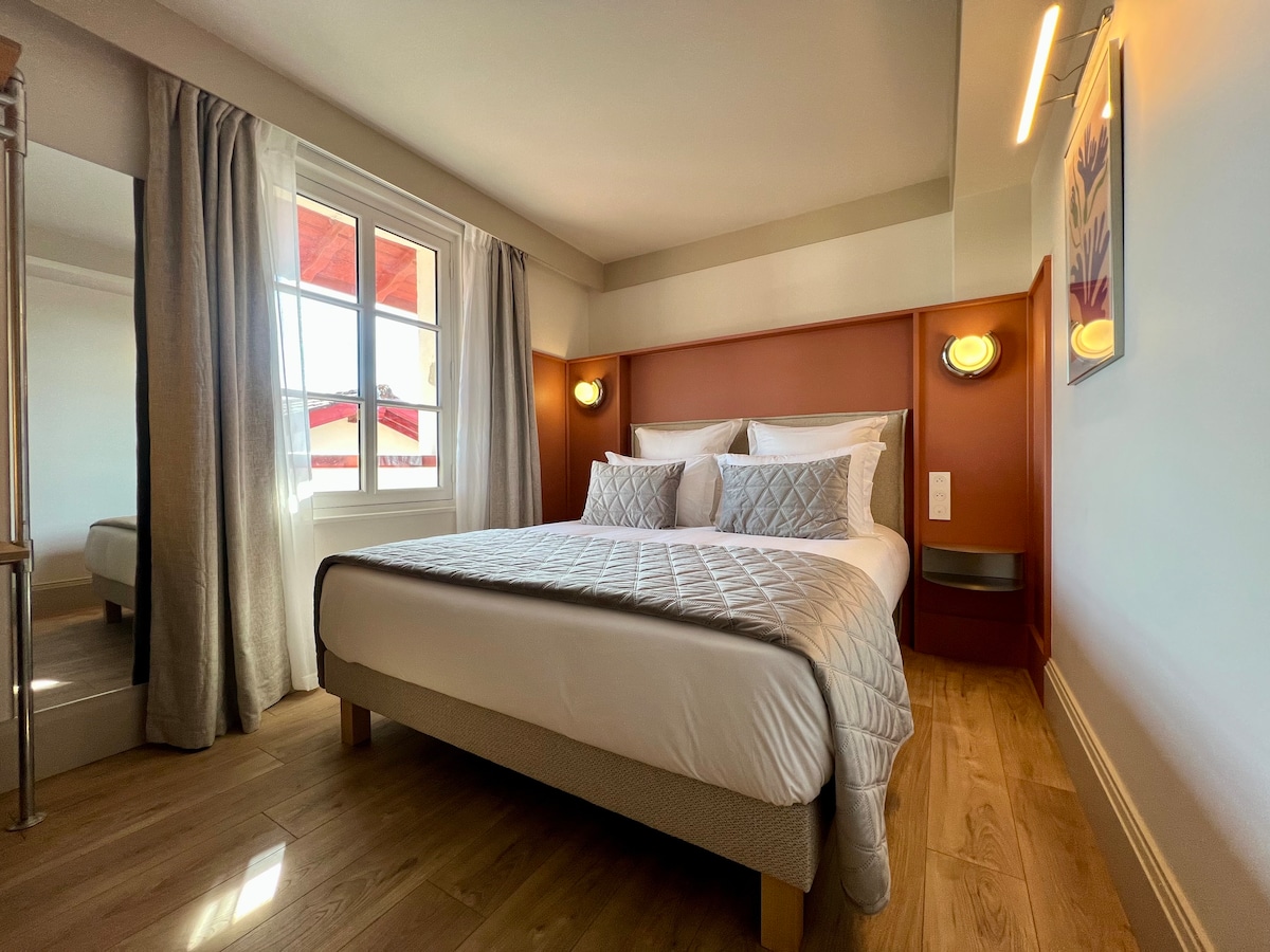 Well-appointed, these 11 - 13sqm rooms are ideal for two people. Bright and refreshing like the Atlantic, simple and warm like a vacation home, the rooms are characterized by natural materials and soft colors. The wall decor is the result of a collaboration with the Departmental Archives of the Pyrénées-Atlantiques.