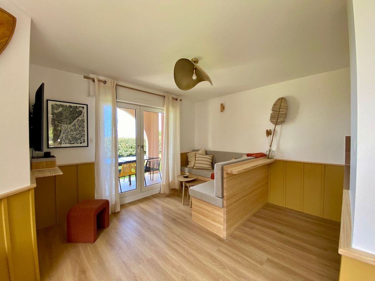 优雅的单间公寓,可欣赏比亚里茨高尔夫球场的美景,游泳池停车场