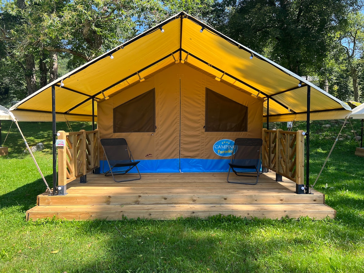 Envie de vivre un séjour insolite dans les Hautes-Pyrénées ? C’est possible dans notre camping À l’ombre des tilleuls… Posez vos valises et écoutez la Nature, grâce à nos tentes. La Tente Maasaï est la même que ses grandes sœurs, sans pilotis, mais avec une vue sur la montagne… Alors n’hésitez pas ! Les lodges et les tentes Maasaï sont faites pour vous. Pas de sanitaires à l’intérieur, mais les sanitaires du camping sont juste à côté, c’est TOP !