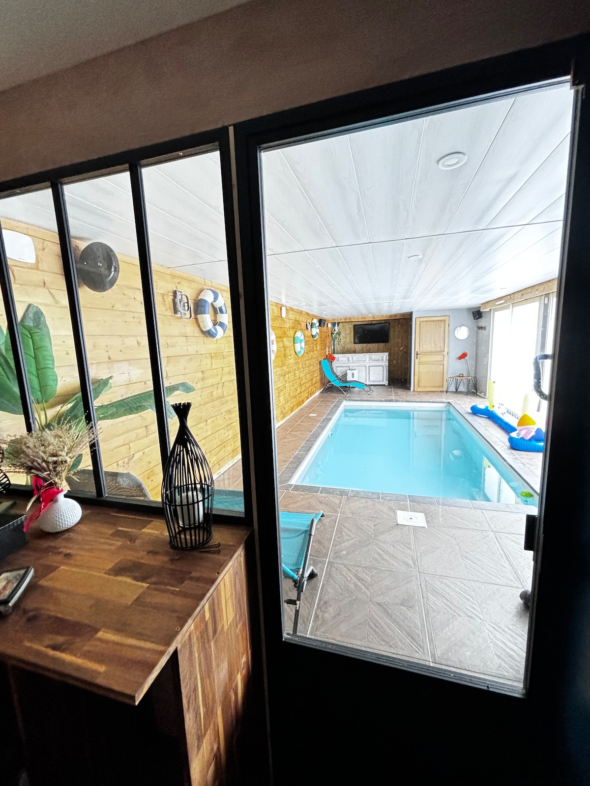 Spacious home with Nordic bath and panoramic Pyrenees view – Sleeps 12 Peaceful and welcoming, perfect for families and friends. Two master suites (freestanding bathtub, modern shower), a child-friendly bathroom, and a cozy dormitory with bunk beds. One family room with Queen bed and single bed. Fully equipped kitchen, large dining table, Nordic bath under a pergola. 3,000 m² garden with stunning views of the Pyrenees from every room—even from your bed.